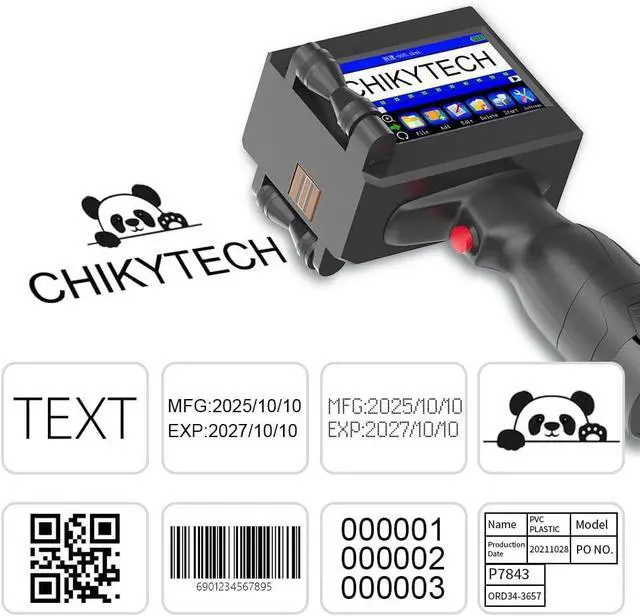 Print content: Hand held printer text, label, numbers, QR code, barcode, production date, time, logos, photos( Flashdisk input the format of .bmp / .jpg)