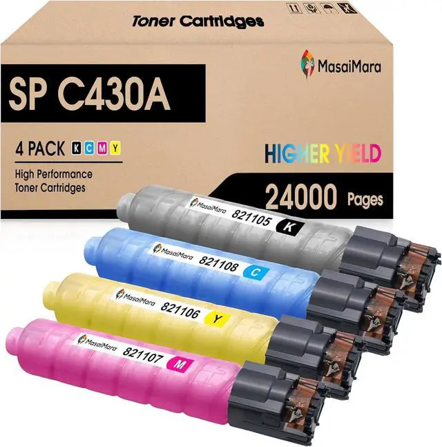 Model: SP C430A Toner Cartridges (Black 821105, Cyan 821108, Yellow 821106, Magenta 821107)