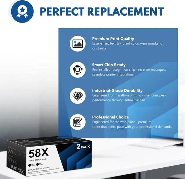 The 58X toner, featuring an upgraded chip, is fully compatible with your printers. It provides a smooth printing experience and helps improve your office efficiency