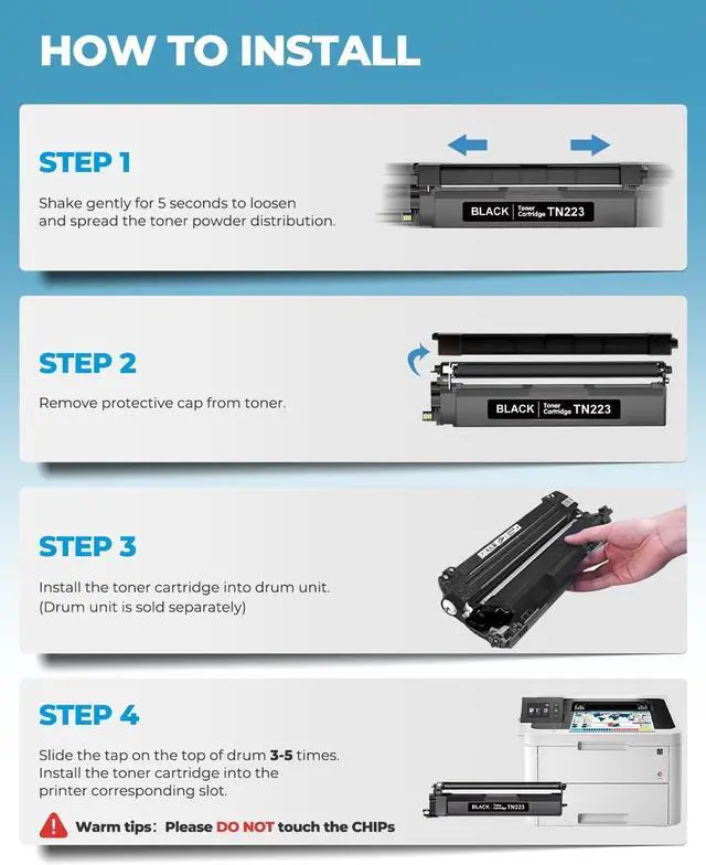 Reliable Quality, Perfect Fit: Every TN223 toner cartridge undergoes stringent quality testing to ensure flawless compatibility with Brother printer and Depend on flawless performance and outstanding results, print everytimes.