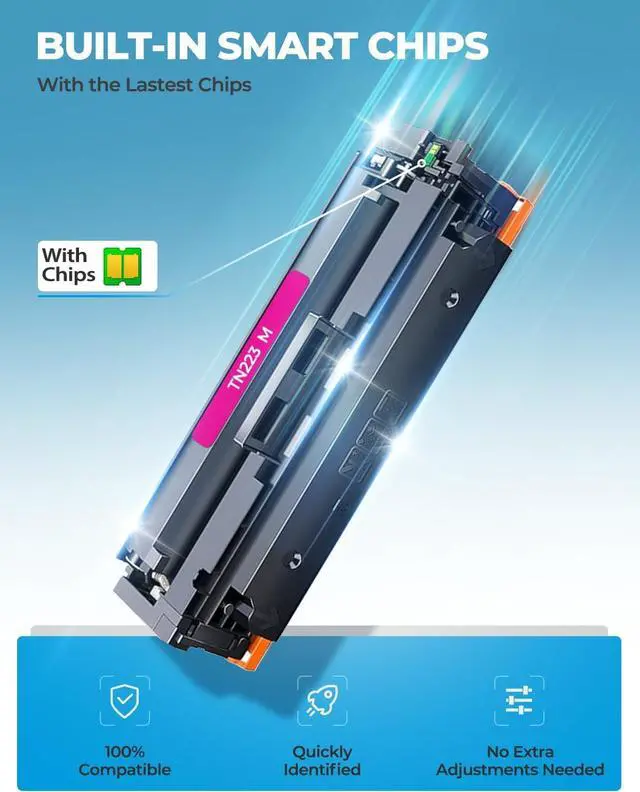 Advantages: Unlock Premium Printing with the TN-223 Toner Cartridge: 1. Crisp-Clear Precision: Achieve consistently sharp, professional-quality prints with exceptional detail.2. Vibrant & Enduring Color: Produce vivid prints that resist fading, ensuring documents and images look impressive longer. 3.Maximized Page Yield: Print significantly more pages per cartridge, reducing replacement frequency and cost per page.