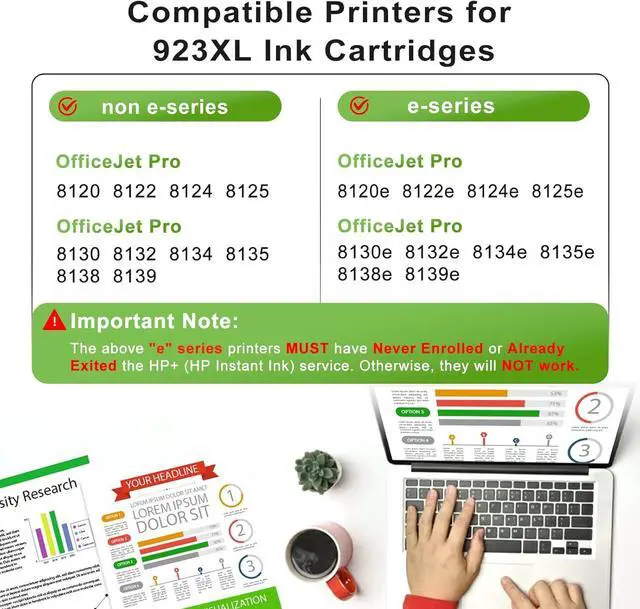 Important Note: If you are using any of the "*e" series printers, you MUST confirm that your printer has Never Enrolled or has Already Exited the HP+(Instant Ink) service. Otherwise, Our 923e ink cartridges will NOT work