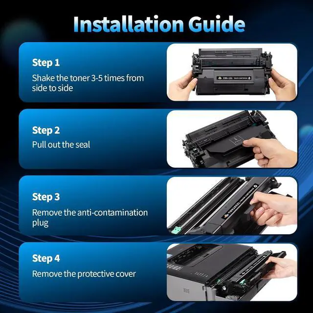 Contents: 4-pack of 121 toner cartridges replacement for Canon 121 CRG-121 CRG121 toner cartridges all with chip