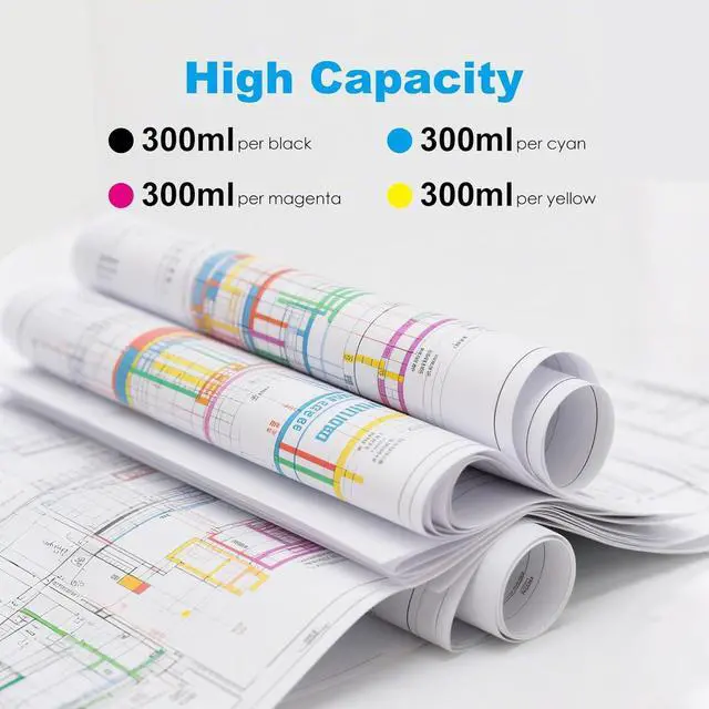 Extended Ink Supply:Each 300ml cartridge delivers consistent flow for high-volume architectural or geographical map.