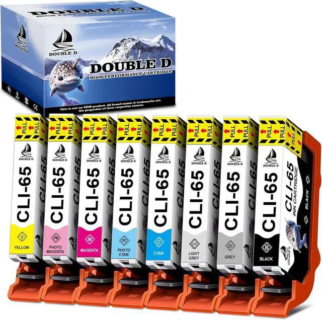 Packag Contents 1BK 1C 1M 1Y 1PC 1PM 1GY 1LGY CLI-65 ink cartridges (Total 8 Pack).