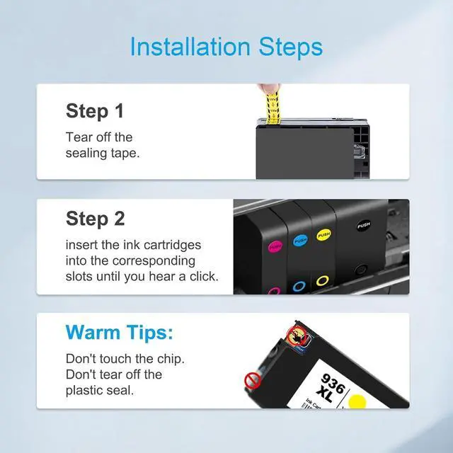 Packing List:4-Pack 936XL Ink Cartridges(1BK/1C/1M/1Y).