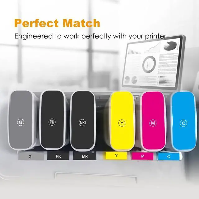 Includes 6 individual 72 ink cartridges: Matte Black, Photo Black, Cyan, Magenta, Yellow, Gray. Each sealed for preservation.
