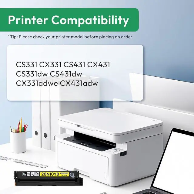 High-Yield for CS331 Yellow Toner Cartridge: With a yield of up to 1,800 pages per 20N10Y0 toner cartridge (at 5% coverage on A4 paper). It reduces replacement frequency and boosts productivity.