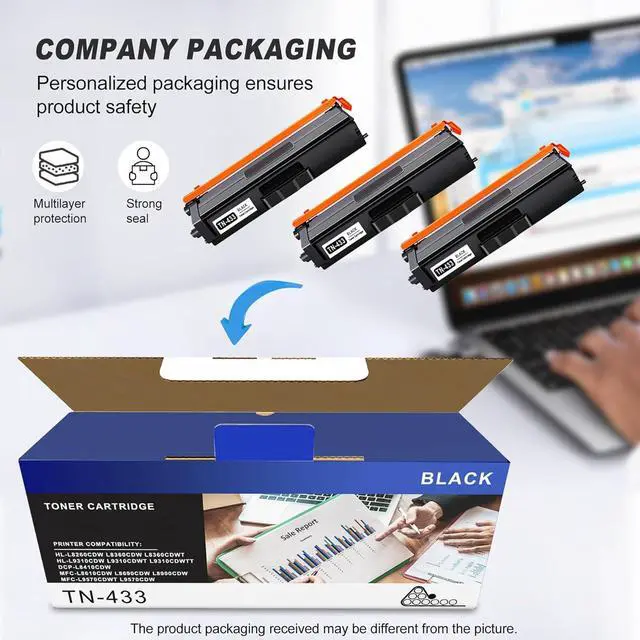 Include: 3 Pack TN433 Toner Cartridges Compatible for 3 Black TN433.