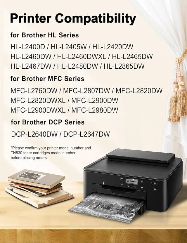 : With smart chip, quickly recognized by Brother HL-L2400D, HL-L2405W, HL-L2420DW, HL-L2460DW, HL-L2460DWXL, HL-L2465DW, HL-L2467DW, HL-L2480DW, HL-L2865DW, DCP-L2640DW, DCP-L2647DW, MFC-L2760DW, MFC-L2807DW, MFC-L2820DW, MFC-L2820DWXL, MFC-L2900DW, MFC-L2900DWXL, MFC-L2980DW Printer