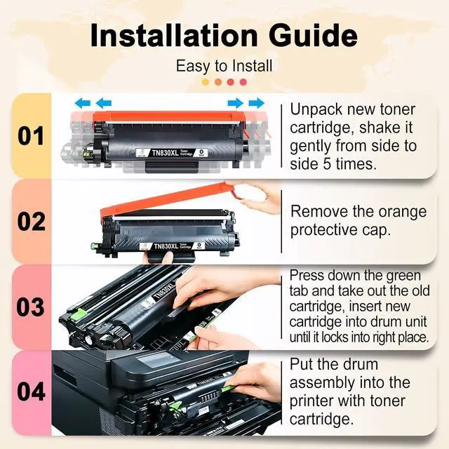 : Miss Deer TN830XL toner cartridges can be used for copy paper and photo paper. Specially formulated TN 830 toner make sure to print crisp documents and life-like photos. Sharp and smooth, Vibrant color, Prevents clogging
