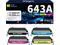 Remanufactured 643A Toner Cartridge - 643A toner cartridge with 4 pack (Black / Q5950A, Cyan / Q5951A, Yellow / Q5952A, Magenta / Q5953A), upgraded materials and chip bring the perfect printing experience