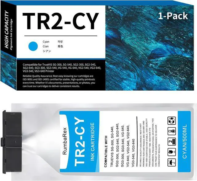Ink Volume: each TR2-CY Ink Cartridge with a capacity of 500 ml