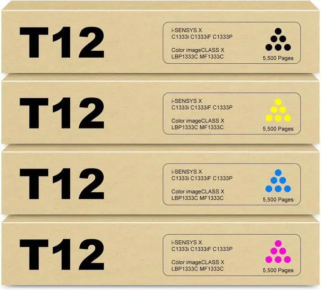 Model: High Yield T12 T12L Toner Cartridge Replacement for Canon T12 Toner, Include T12BK (5098C005AA) T12C (5097C005AA) T12M (5096C005AA) T12Y (5095C005AA)