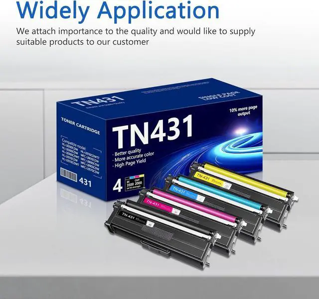 Printer model:Compatible for Brother TN431 toner cartridges with HL-L8260CDW, HL-L8360CDW, HL-L8360CDWT,HL-L9310CDW,HL-L9310CDWT,HL-L9310CDWTT,MFC-L8610CDW, MFC-L8690CDW, MFC-L8900CDW, MFC-L9570CDW, MFC-L9570CDWT, DCP-L8410CDW Printer