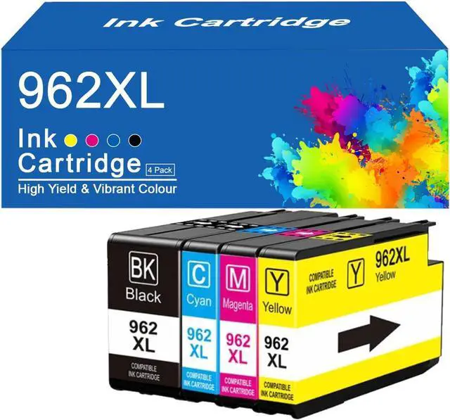 Package Contents: 4-Pack 962XL Black Ink Cartridge x1, 962XL Cyan Ink Cartridge x1, 962XL Magenta Ink Cartridge x1, 962XL Yellow Ink Cartridge x1