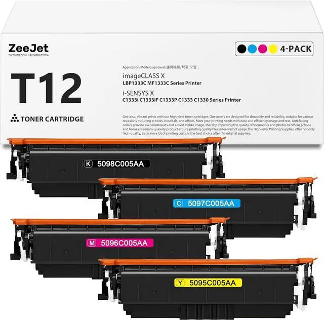 Product Name: Zeejet Compatible T12 Toner Cartridge Replacement for Canon T12 T12L Toner Cartridges 4-Pack (Black, Cyan, Magenta, Yellow) 5098C005AA 5097C005AA 5096C005AA 5095C005AA