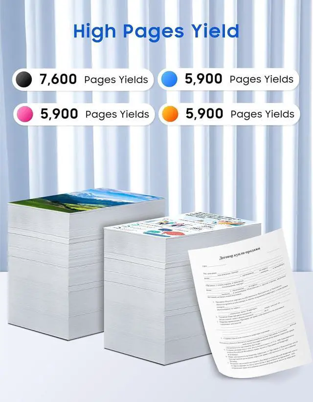 Page Yield: Up to 7,600 pages for T12 Black Toner Cartridge and 5,900 pages for each T12 Color Toner Cartridge (Cyan, Magenta, Yellow)