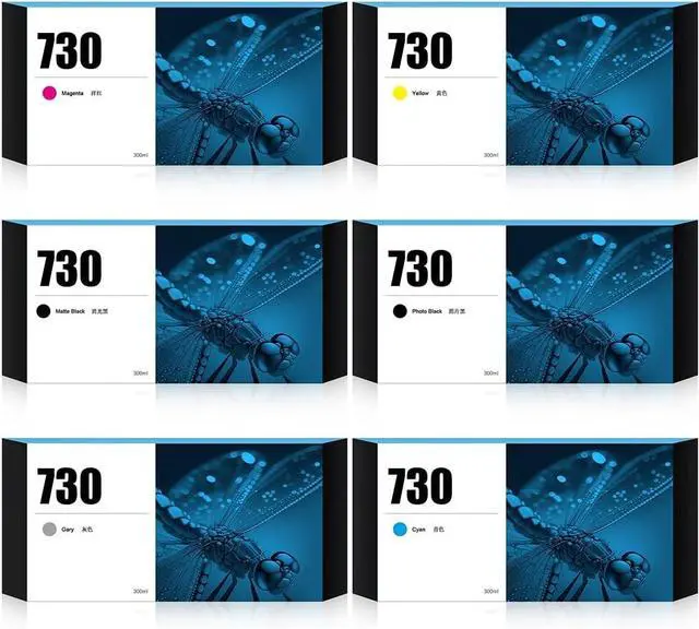 What You Get: 6Pack Latest upgrade replacement for HP 730 ink cartridges (300ml Matte Black/Photo Black/Cyan/Yellow/Gray/Magenta), backed by our professional and attentive customer service.