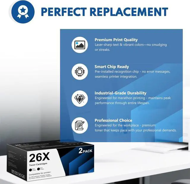 The 26X toner, featuring an upgraded chip, is fully compatible with your printers. It provides a smooth printing experience and helps improve your office efficiency