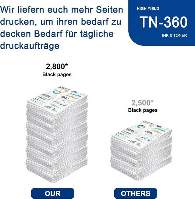 Page Yield: 2800 pages per TN360 Black Toner Cartridge at 5% coverage (Letter/A4).