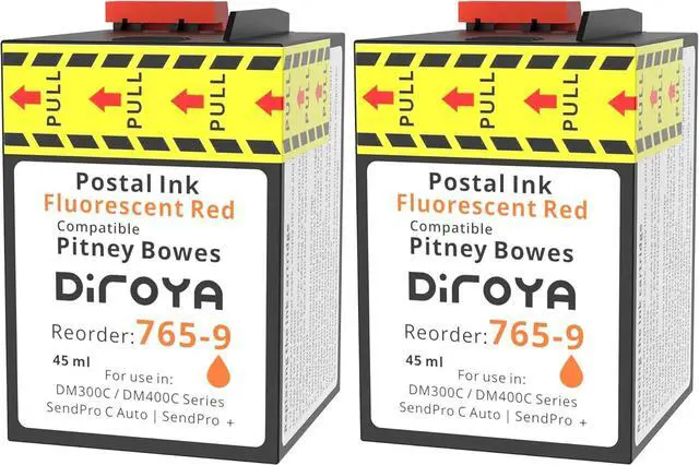 High Yield & Vivid Color: This DIROYA 765-9 ink cartridge is designed for high volume mailing, containing 45ml of fluorescent red ink that yields crisp, clear imprints on your mail.