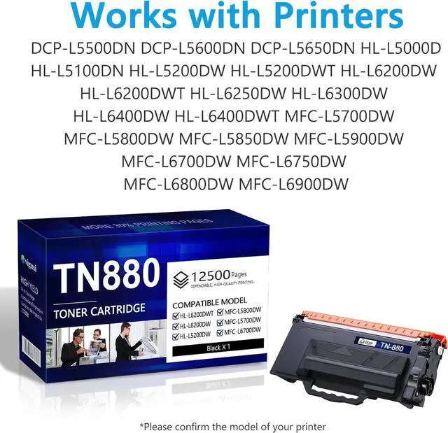 High quality toner: Each High Yield TN880 Toner Cartridge undergoes a strict quality testing procedure to ensure quality and compatibility with your printer.that is already installed and ready to use