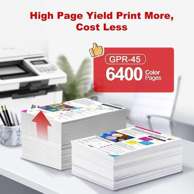 With an estimated print yield of 6,400 pages per Magenta GPR-45 at 5% Coverage (letter/A4).