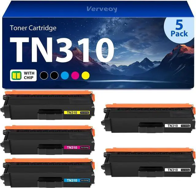 Verveoy Compatible for Brother TN310 TN310BK TN310C TN310M TN310Y Toner Cartridge 5-Pack for TN336 TN315 TN331 ( 2 Black, 1 Cyan, 1 Magenta, 1 Yellow )