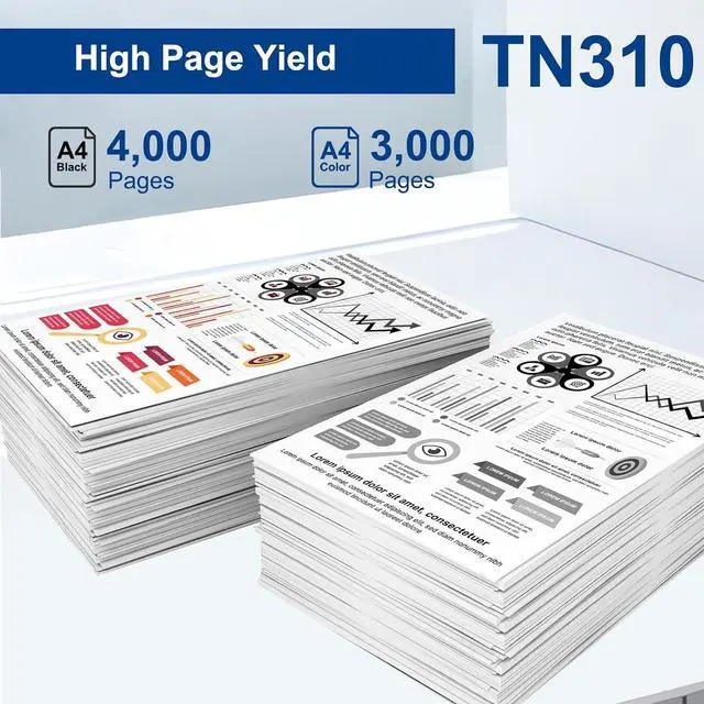 High Page Yield: Up to 4,000 pages for TN310BK toner cartridge; 3,000 pages for TN310C TN310M TN310Y TN310 color toner cartridge (at 5% coverage)