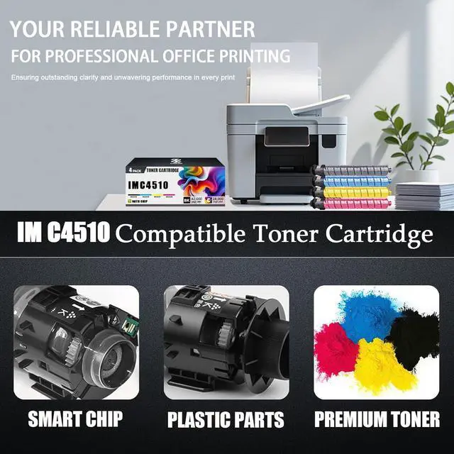Page Yield: 42,000 Pages per IM C4510 Black Toner Cartridge, 28,000 Pages per IM C4510 Color Toner Cartridges