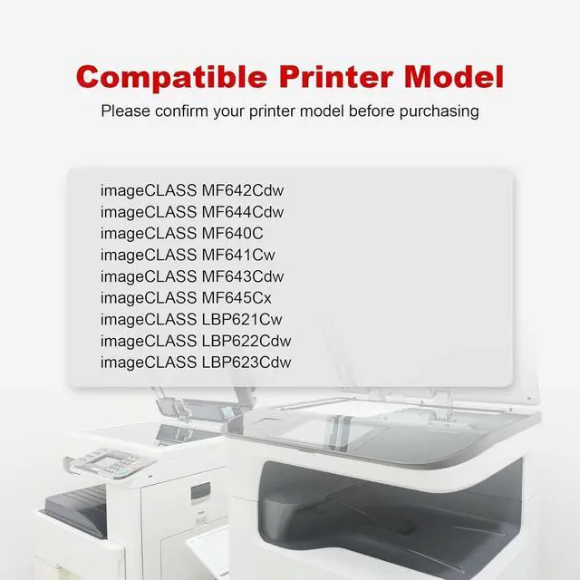 It's fully Compatible for Canon models such as imageCLASS MF642Cdw MF644Cdw MF640C MF641Cw MF643Cdw MF645Cx LBP621Cw LBP622Cdw LBP623Cdw Printer.