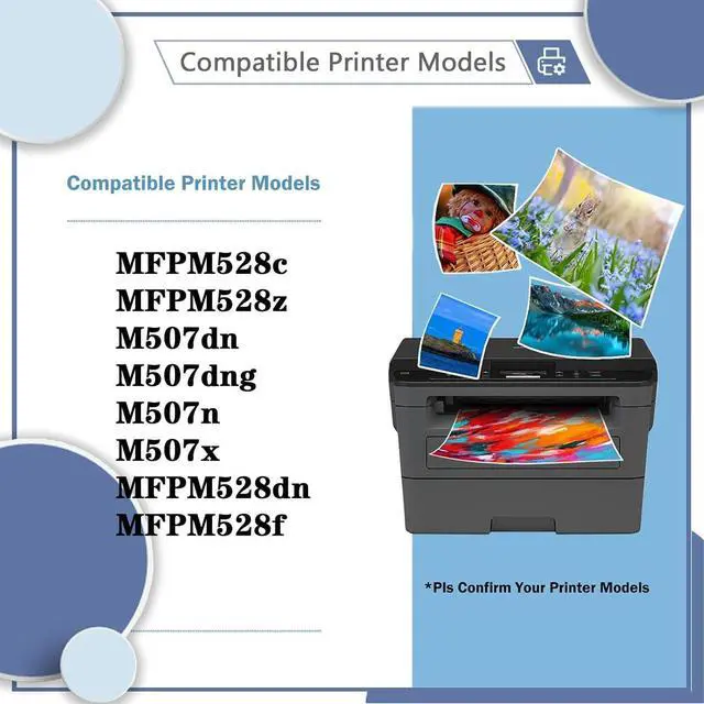 Compatible Printers: Confirm your printer model first;For MFPM528c MFPM528z M507dn M507dng M507n M507x MFPM528dn MFPM528f Printer