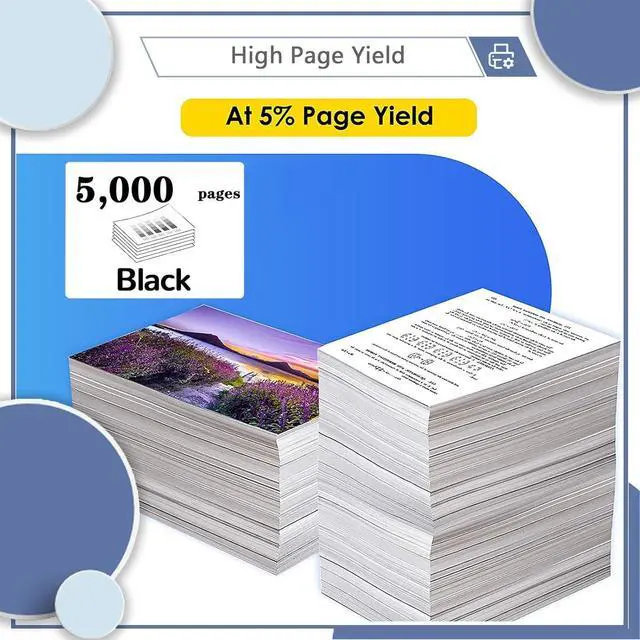 High Page Yield: Black Print volume of about 5,000 pages, A4 paper coverage rate of 5%,Brings you reliable printing,Fading resistance, strong water resistance
