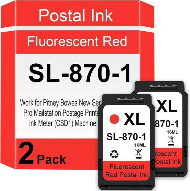 SL-870-1 XXL Red Ink Cartridge High Capacity Replacement for SL-870-1 Fluorescent Red Ink Cartridges Work for Pitney Bowes New SendPro Mailstation Postage Printer Ink Meter (CSD1) Machine2 Pack)