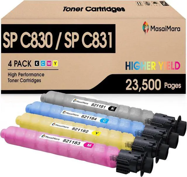 Model: SP C830 / SP C831 Toner Cartridges (Black 821181, Cyan 821184, Yellow 821182, Magenta 821183)