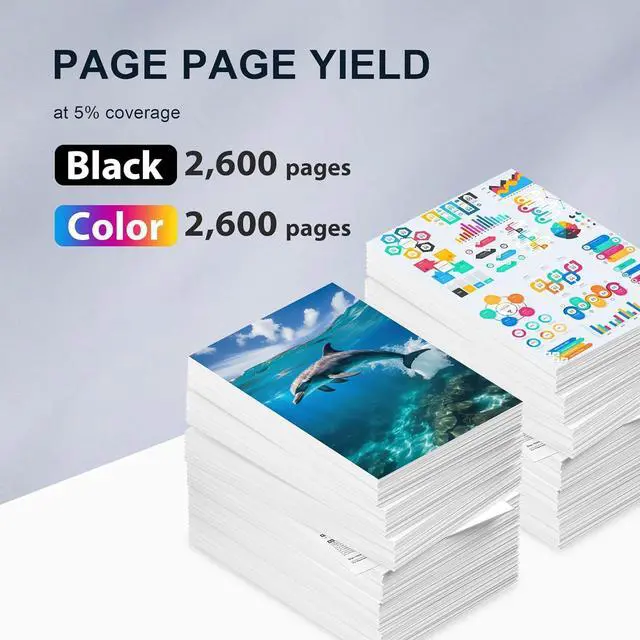High Page Yield: Up to 2,600 pages per Black, 2,600 pages per Color cartridges at 5% coverage (Letter/A4)