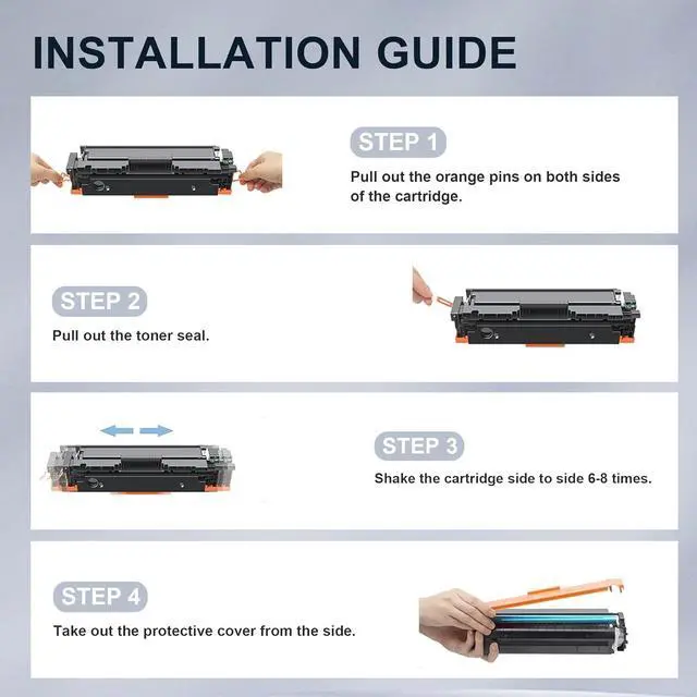 Package Contents: 1 x 410A CF410A black toner, 1 x 410A CF411A cyan toner, 1 x 410A CF412A yellow toner, 1 x 410A CF413A magenta toner (Total 4 Pack Compatible Replacement for HP 410A Toner Cartridges 4 Pack)