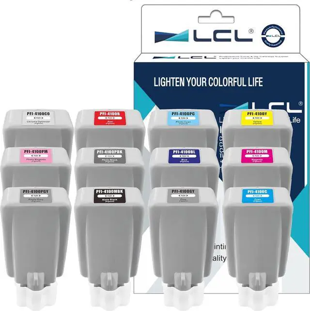 Pigment Ink: LCL PFI-4100 ink is pigment ink which has a high concentration and contrast, and is an ink that can draw fine characters clearly without color infiltration. Pigment inks are waterproof and light resistant and do not fade even when outdoors, thus allowing prints to last long enough.