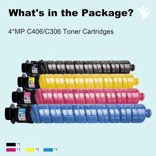 Package:4 pack Replacement for Ricoh MP C406 C306 toner cartridges combo pack (1x MP C406 Black toner cartridge, 1x MP C406 Cyan toner cartridge, 1x MP C406 Magenta toner cartridge, 1x MP C406 Yellow toner cartridge)