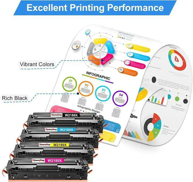 Superior Print QualityEnhance your printing quality with HenceBuy. Our 218X toner cartridges, compatible with HP 218X Toner Cartridges 4 Pack with Chip, ensure sharp text and vibrant colors, meeting professional printing needs