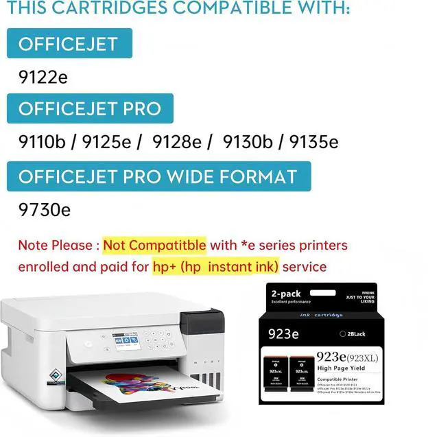 Compatibility: PFKink 923e ink cartridges compatible with OfficeJet 8120e 8122e 8124e 8125e OfficeJet Pro 8130e 8132e 8134e 8135e 8138e 8139e printer. (NOTE: Not compatible with printers activated for HP+ service program)