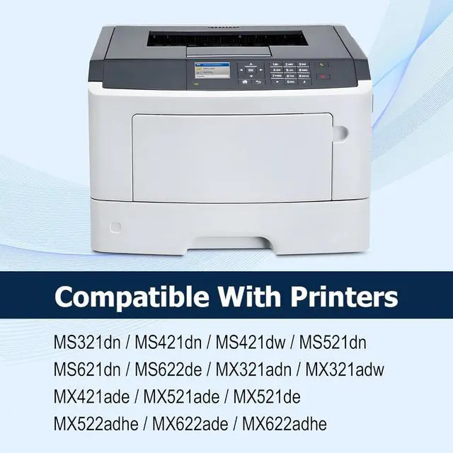 Compatible Printer:MS321dn, MS421dn, MS421dw, MS521dn, MS621dn, MS622de, MX321adn, MX321adw, MX421ade, MX521de, MX521ade, MX522adhe, MX622ade, MX622adhe laser printer