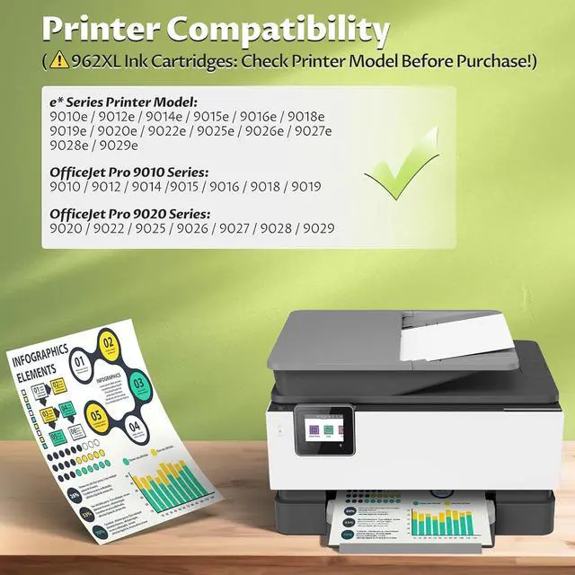 Why Choose Us: 962 962XL Ink Compatible with activated H P+ and Instant Ink services on *e series printers, these hp 962XL Ink Cartridges Combo Pack are equipped with upgraded chips and high-quality ink for fade-resistant colors. We deliver vivid, lifelike images