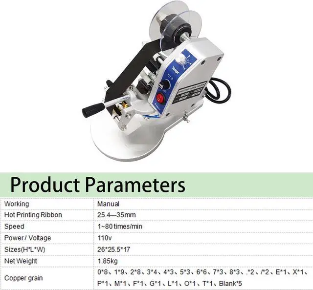 Hand-pressed ribbon coding printer is made of high quality aluminum alloy material,and has stable center of gravity,which is strong and durable.