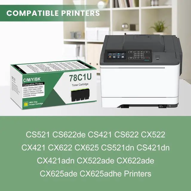 Compatible List: Compatible for Lexmark 78C1U toner cartridge replacement for Lexmark CS521 CS622de CS421 CS622 CX522 CX421 CX622 CX625 CS521dn CS421dn CX421adn CX522ade CX622ade CX625ade CX625adhe Printers