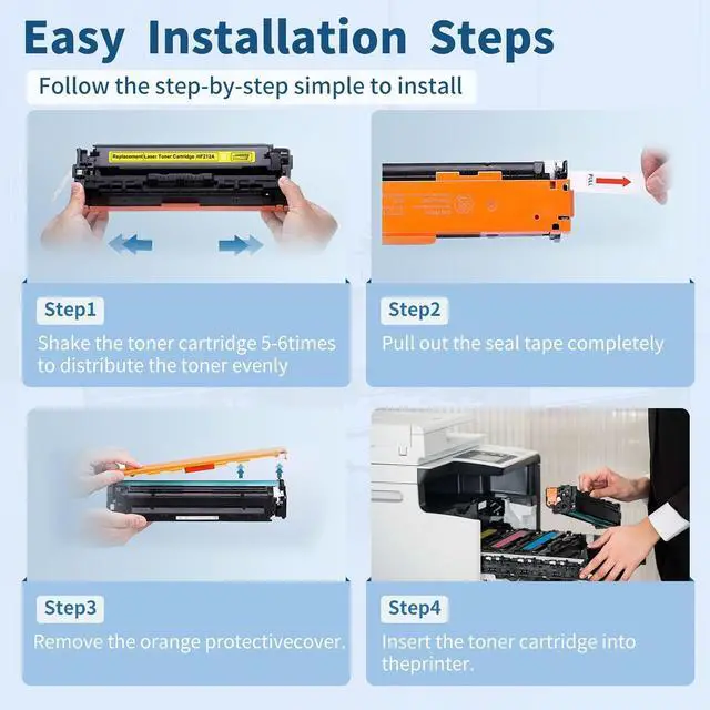 Vibrant & Clear Prints: Formulated with premium toner, these cartridges produce sharp black text and vivid color images. Whether for documents, presentations, or photos, the prints maintain consistent quality, with smooth edges and true-to-life colors.