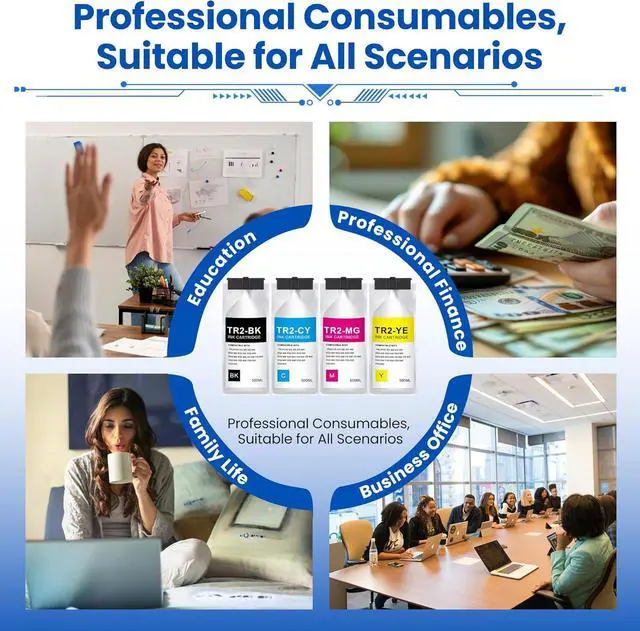 Capacity: 500ML each TR2 ink cartridge, totally 2000ml, meeting your mass printing needs