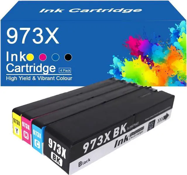 Package Contents4-pack 973X black ink cartridge x1, 973X cyan ink cartridgex1, 973X magenta ink cartridge x1, 973X yellow ink cartridge x1
