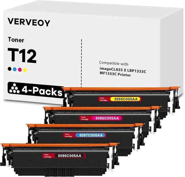 Model Name: Verveoy Compatible with Canon T12 T12L Toner T12BK (5098C005AA) T12C (5097C005AA) T12M (5096C005AA) T12Y (5095C005AA) High Yield Toner Cartridge (With Chip)